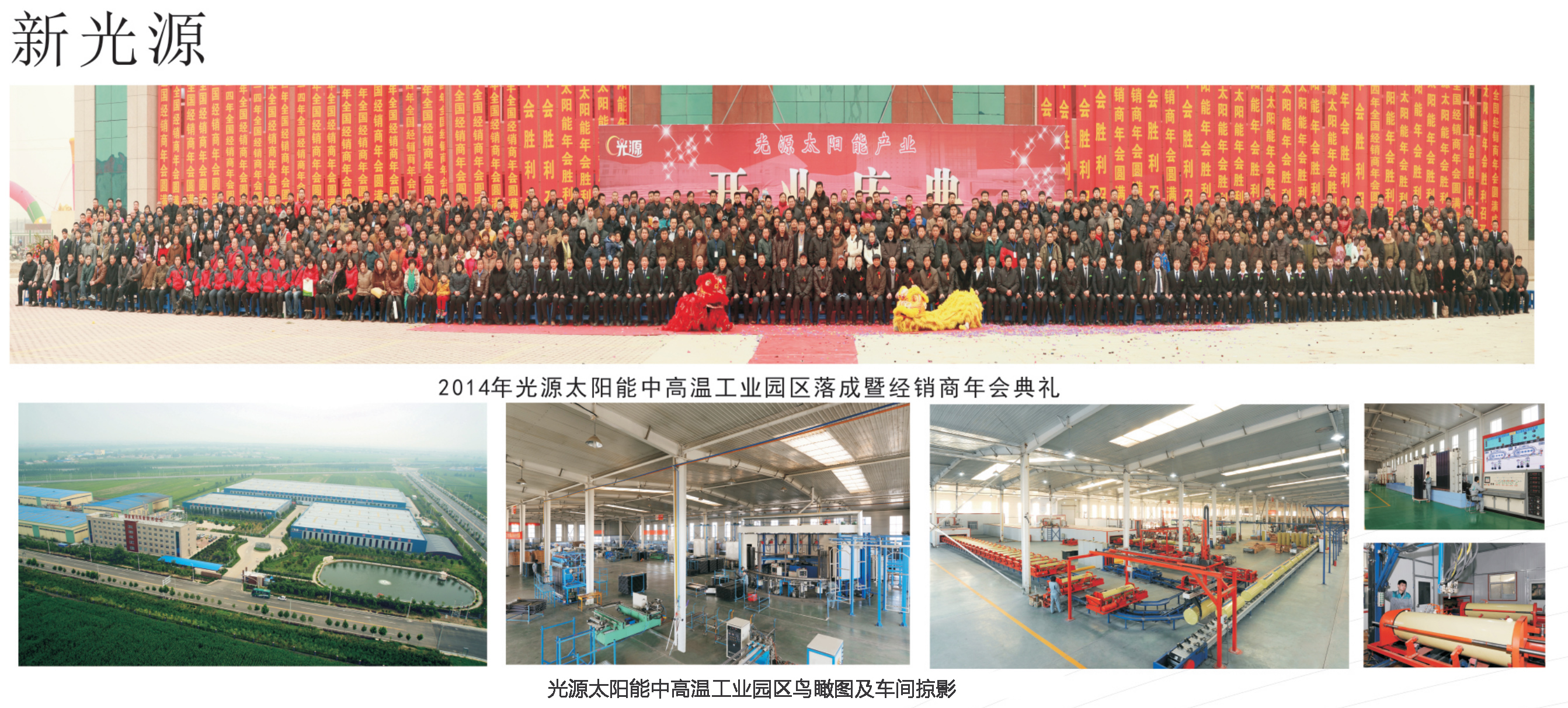 2013年12月光源公司搬遷到新廠(chǎng)區(qū),如今的光源公司,以黨的路線(xiàn)方針和政策為指導(dǎo),以科技發(fā)展與創(chuàng)新為契機(jī),以太陽(yáng)能開(kāi)發(fā)與利用為訴求,不僅夯實(shí)了太陽(yáng)能熱水系統(tǒng)等傳統(tǒng)產(chǎn)品的基石,更在新能源產(chǎn)品的開(kāi)發(fā)中屢戰(zhàn)佳績(jī)。