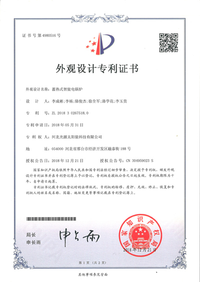外觀設(shè)計(jì)專利證書(shū)--蓄熱式智能電鍋爐