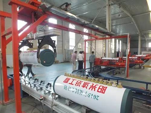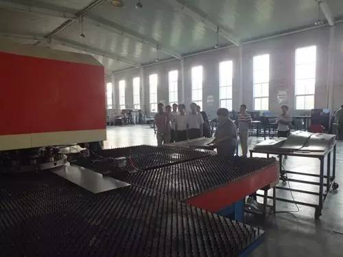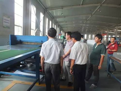 在參觀完太陽(yáng)能真空集熱管制造車間后又到了太陽(yáng)能工程設(shè)備總裝車間,先后參觀了全自動(dòng)下料開(kāi)平設(shè)備、轉(zhuǎn)塔式全自動(dòng)數(shù)控沖床生產(chǎn)線、全自動(dòng)外皮雙頭縮口滾花機(jī)、臥式反向積放發(fā)泡生產(chǎn)線、環(huán)戊烷聚氨酯高壓發(fā)泡機(jī)、全自動(dòng)數(shù)控打包生產(chǎn)線以及壁掛太陽(yáng)能生產(chǎn)線等等。