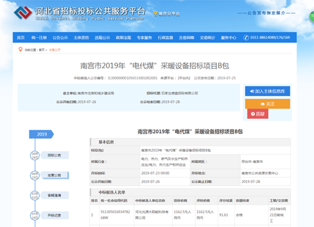 喜訊!喜訊!光源公司中標(biāo)南宮市2019年“電代煤”采暖設(shè)備招標(biāo)項(xiàng)目