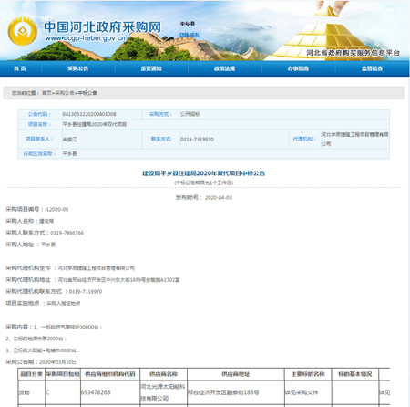 平鄉(xiāng)縣住建局2020年雙代項目中標